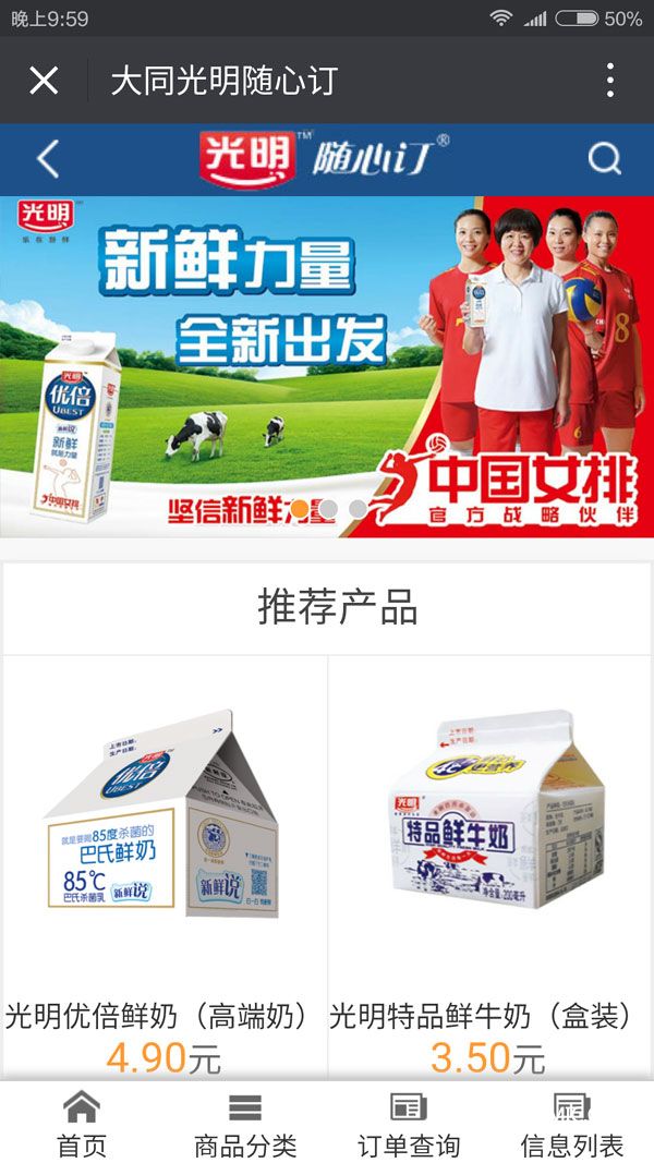 ★登錄大同光明巴氏鮮奶官方微信平臺付費;