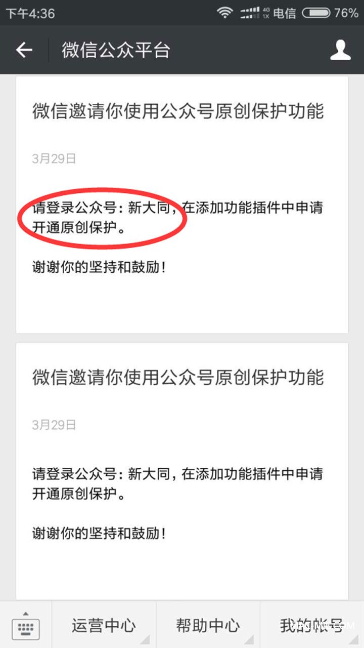 新大同”微信公眾平臺(sxdt_net)成為官方邀請,獲得申請開通“原創(chuàng)聲明”功能。