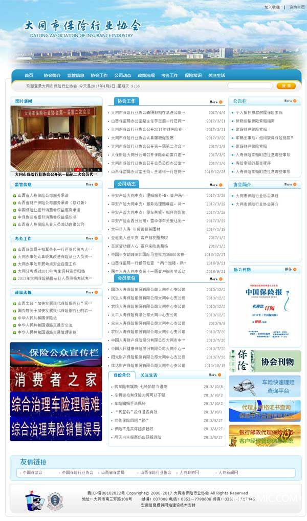 2017年4月,大同市保險行業(yè)協(xié)會http://www.dtbx.org.cn網(wǎng)站經(jīng)過全新改版升級,正式上線。