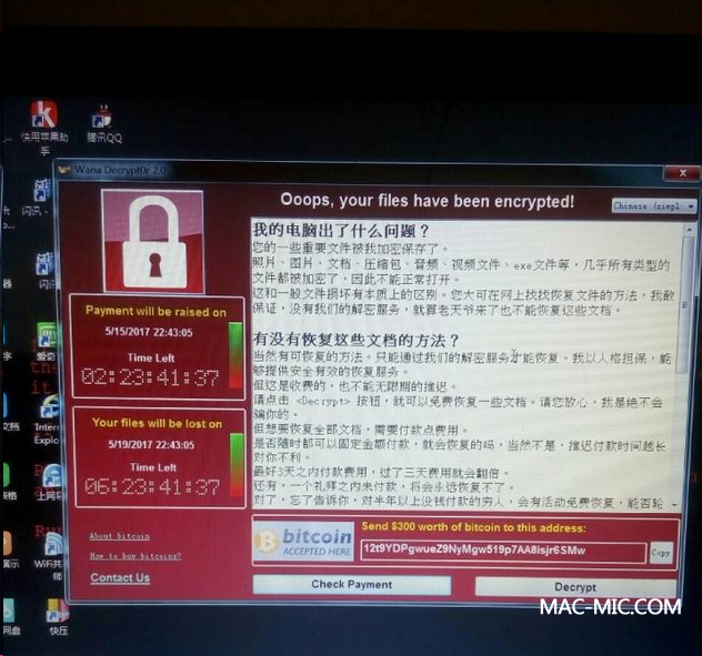 勒索病毒會(huì)把磁盤里的圖片、文檔、視頻、壓縮包等各類資料強(qiáng)行加密,導(dǎo)致文件無法正常打開。此次爆發(fā)的勒索病毒包括ONION和WNCRY兩種,分別會(huì)把磁盤文件篡改為.onion和.wncry后綴,病毒敲詐的金額高達(dá)5萬(wàn)多元。