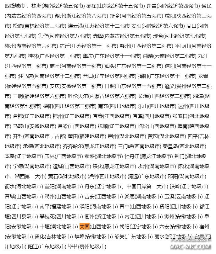 中國每年都會(huì)有一個(gè)關(guān)于城市的排名,分為一線二線三線,甚至四線五線(不過今天我們就介紹到三線)。北京、上海、廣州、深圳這四個(gè)城市一向占據(jù)著中國一線城市的寶座,在中國大陸城市中有著突出成績(jī)。2018年的一二三線城市排名有什么變動(dòng)呢?我們生活的這個(gè)城市——大同這個(gè)據(jù)說是中國唯一一個(gè)GDP出現(xiàn)負(fù)增長的城市,在全國城市發(fā)展中究竟處于什么樣的一個(gè)位置呢?